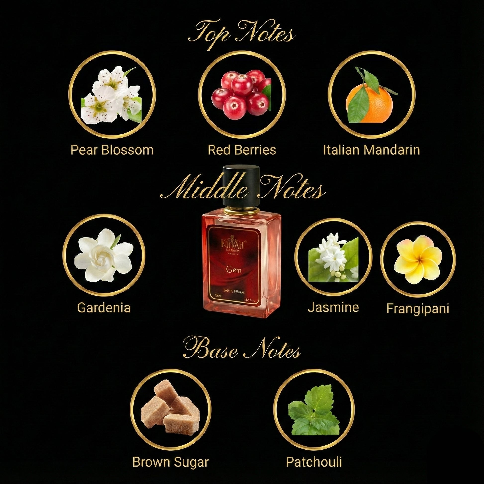 GEM by KIFAH is a graceful floral fragrance inspired by iconic luxury floral scents like Gucci Flora. Soft white florals blend beautifully with fresh citrus and warm musky notes, creating a perfume that feels feminine, elegant, and timeless.